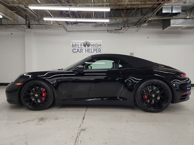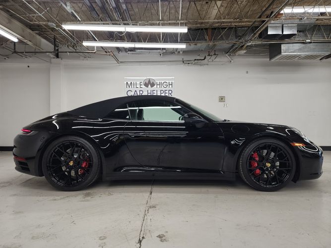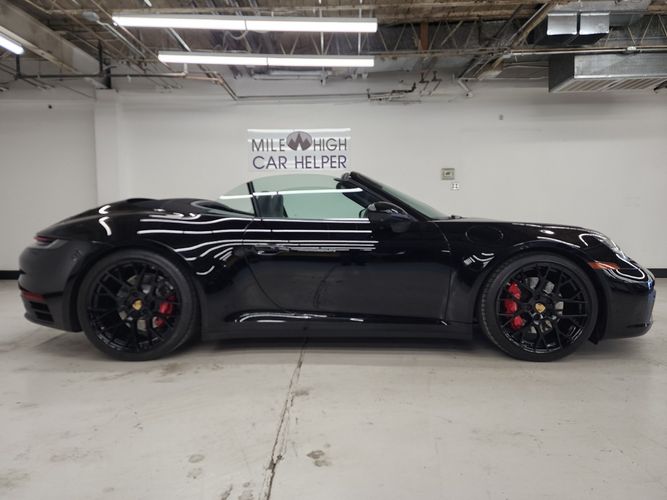 This used 2020 Porsche 911 Carrera 4S Cabriolet for sale in Denver, Colorado, is an exceptional example of Porsche engineering blended with open-air driving. This car has been well maintained, with consistent dealer service history and recent maintenance including an oil service at Prestige Audi. Finished in sleek Black with a matching Black interior, it features highly desirable equipment such as the Sport Package, Premium Package, Adaptive Cruise Control, RS Spyder Design wheels, Sport Chrono, and more. The condition is impressive throughout, offering a deeply optioned, performance-focused 911 with verified care and attention.