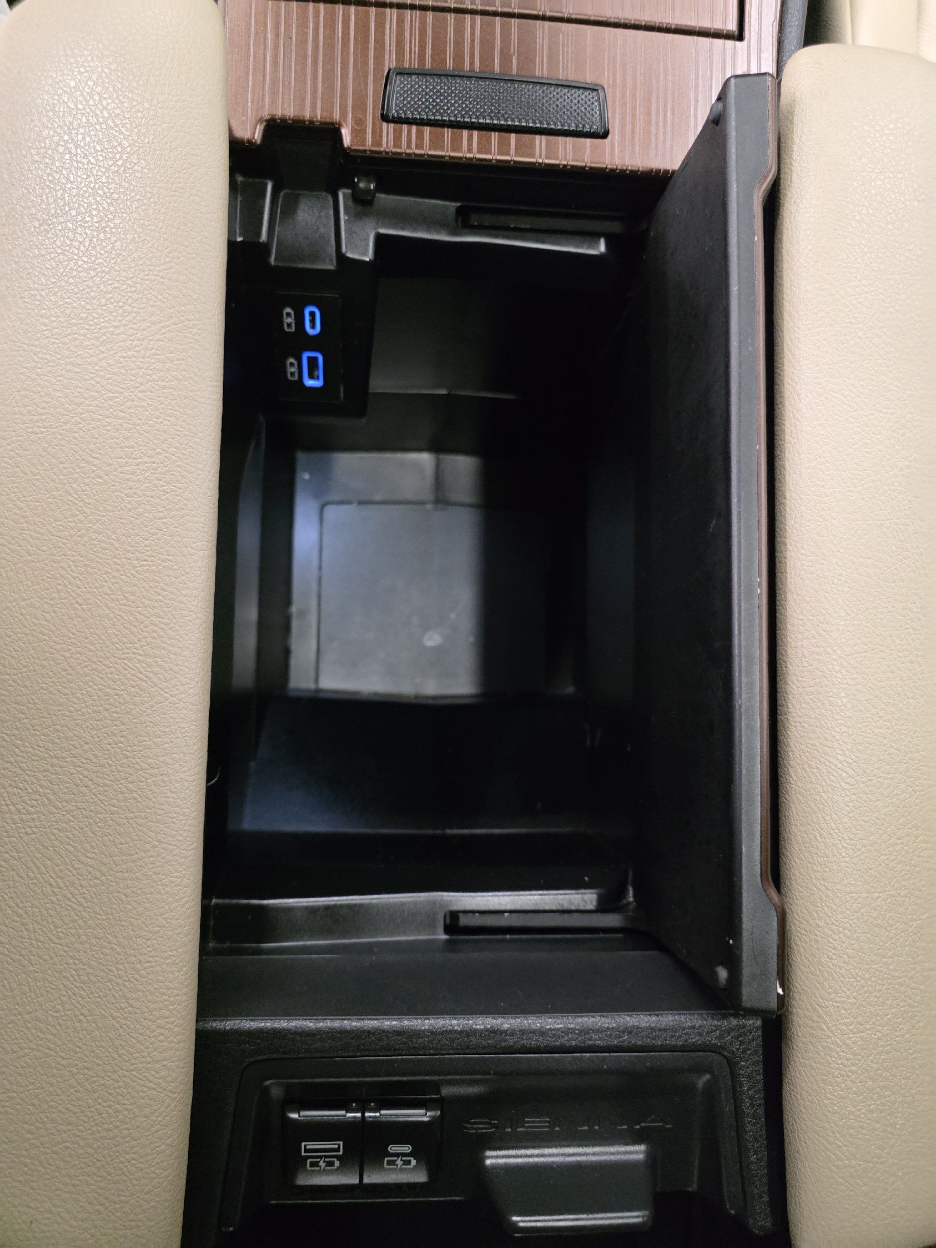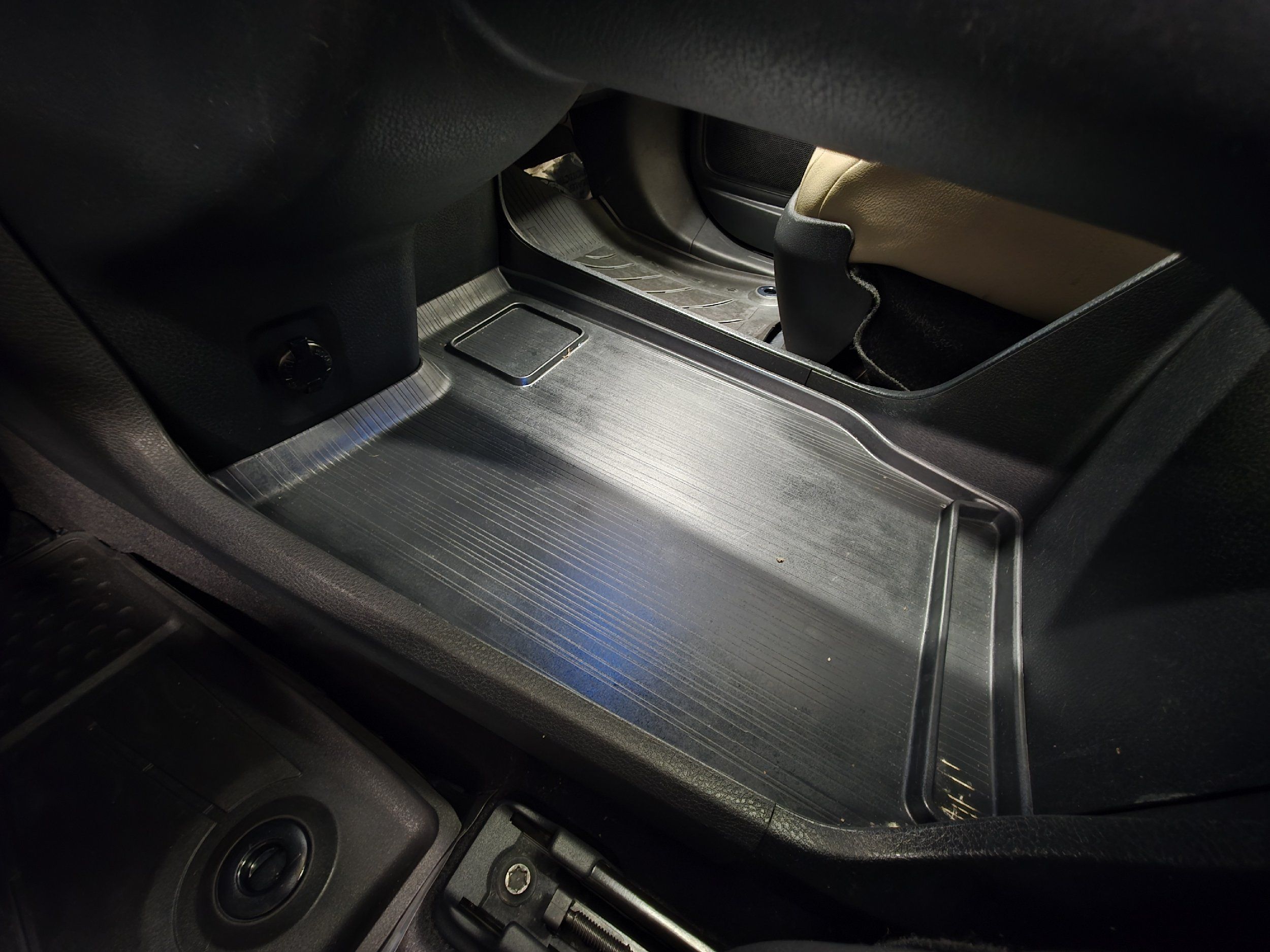 Floor console storage: Covered floor console storage