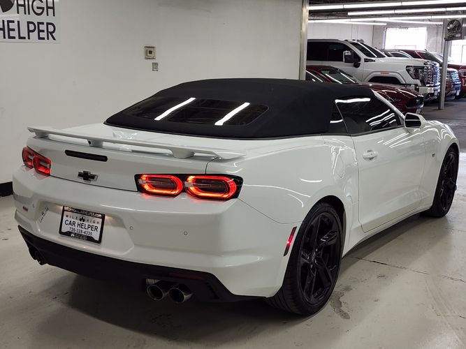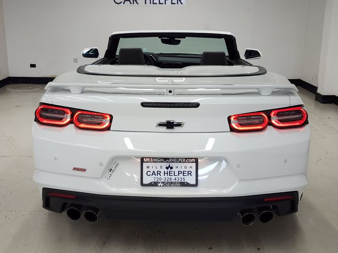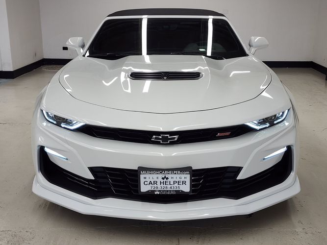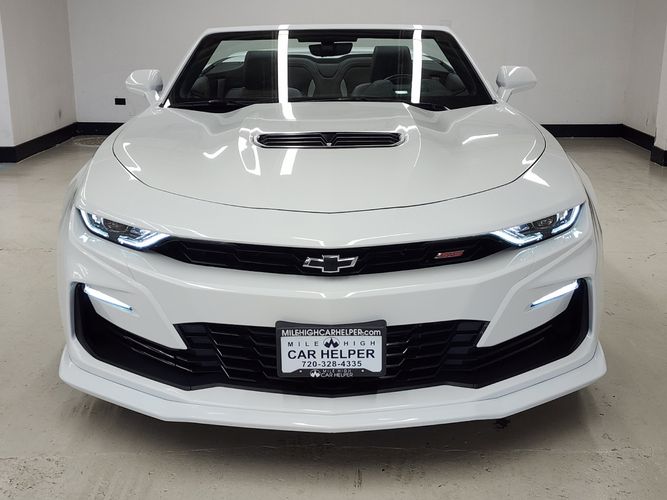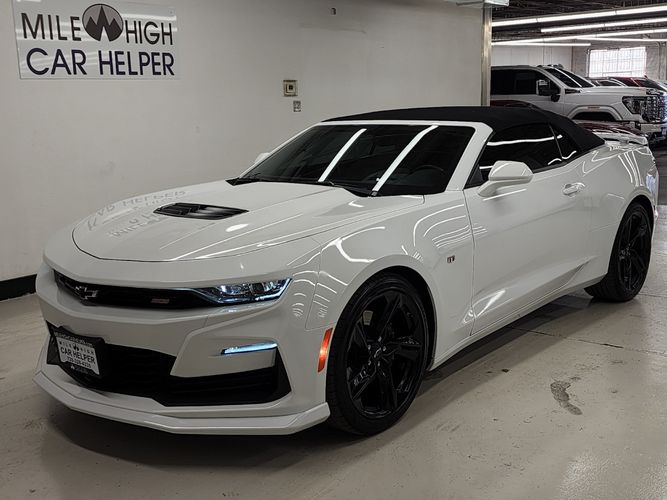 This used 2022 Chevrolet Camaro 2SS Convertible for sale in Denver, Colorado embodies the perfect balance between American muscle and modern refinement. Powered by a 6.2L V8 engine, this 2SS delivers exhilarating performance with 455 horsepower and a roaring dual-mode exhaust note that makes every drive an event. With only 8,000 miles, this one-owner convertible has been meticulously maintained and features premium options like Bose audio, head-up display, heated and ventilated leather seats, and advanced driver aids. A striking Summit White exterior paired with a Jet Black interior makes this convertible both aggressive and elegant.